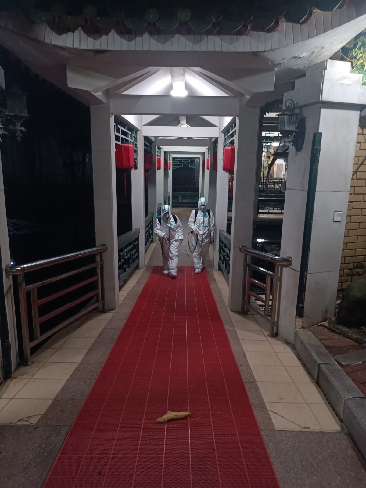 配合相關(guān)政委部門(mén)工作協(xié)調(diào),我司立即派遣消毒工作人員到異常相關(guān)活動(dòng)地方按防疫要求進(jìn)行全面消毒處理,